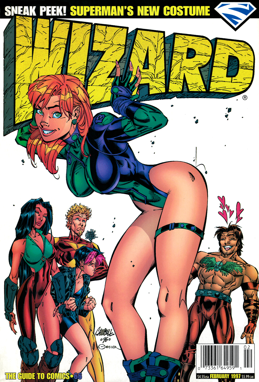 This Gen 13 cover for Wizard #66 by J. Scott Campbell easily checks off all of the boxes for a ’90s Wizard cover: Image Comics characters, art by a “hot” artist, and gratuitous T ‘n’ A.