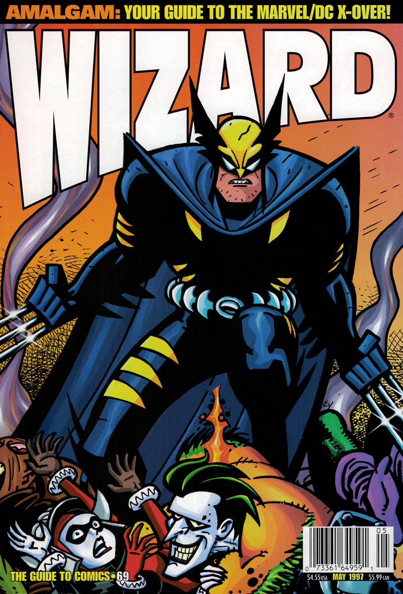 In a move that seems inconceivable in today’s cutthroat market, Marvel and DC teamed-up for several crossovers in the late ’90s, including the shared Amalgam imprint that merged their characters into new creations. Darkclaw, a mix of Batman and Wolverine, appeared on the cover of Wizard #69 by Ty Templeton.